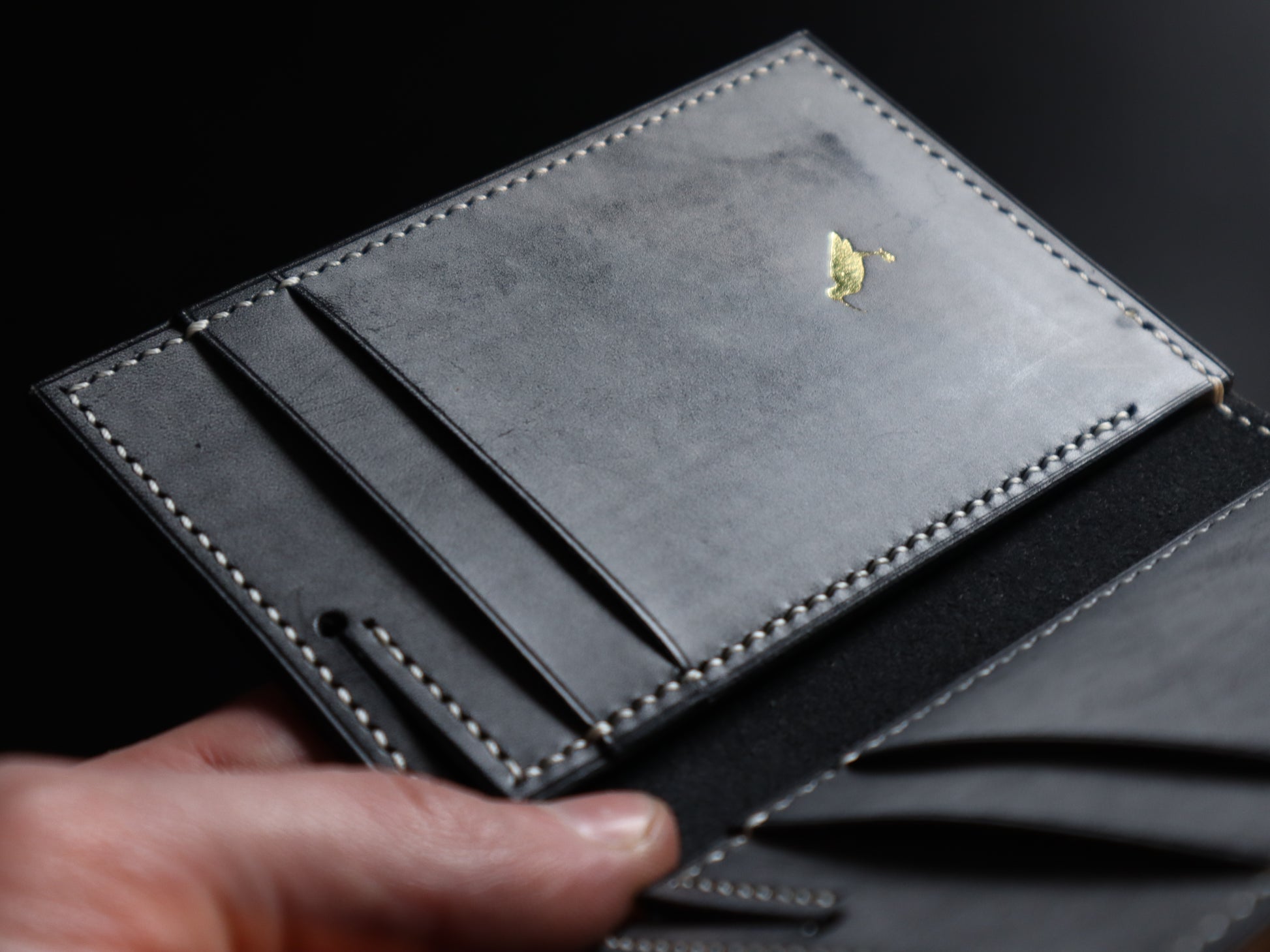 - Leather: Ghost Wax Black by Conceria La Bretagna.